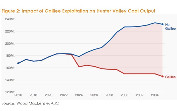 Allowing unlimited extraction of underground water for 60 years is extraordinary and beggars belief. This graph of the impact on the Hunter coal province shows how pointless the whole exercise is, leaving aside the impact on climate and the Great Barrier Reef: