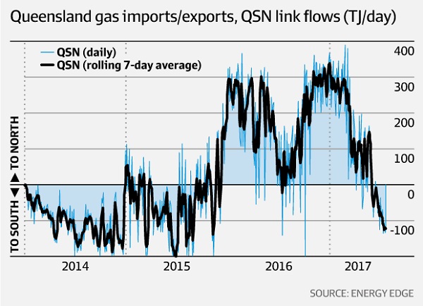 Back on 27 July the AFR ran an article Tables turned on east coast gas supplies. For over 18 months Queensland has acted like a giant Hoover, but now there are signs of a sea change in the flow of gas.
