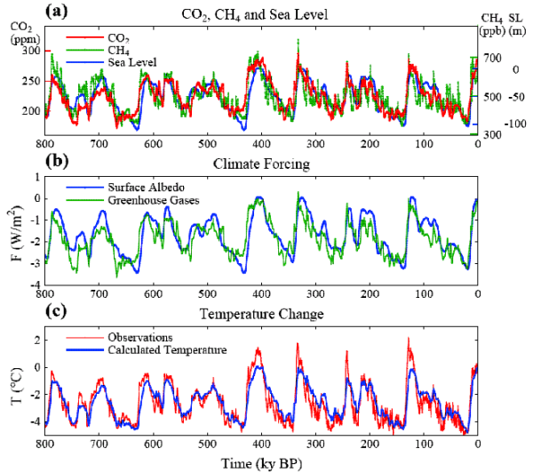 Here’s a more complex graph, I think from one of James Hansen’s publications, going back 800,000 years: