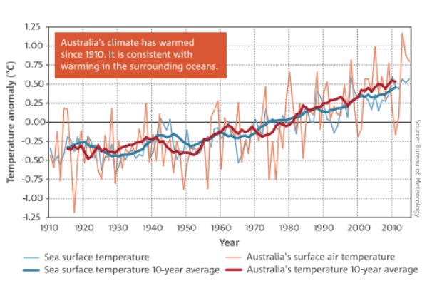 Here’s the graph from the CSIRO State of the Climate Report in 2016, courtesy of Hannam’s article: