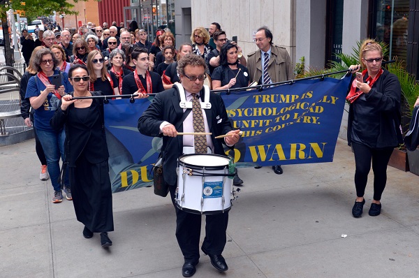 Zoot linked to a piece where 125 psychologists and other mental health professionals marched along lower Broadway on Saturday to demand that President Trump be thrown out of office, based on a constitutional clause allowing presidents to be ousted when their cabinets decide they are ” unable to discharge the powers and duties” of their job. Here they are: