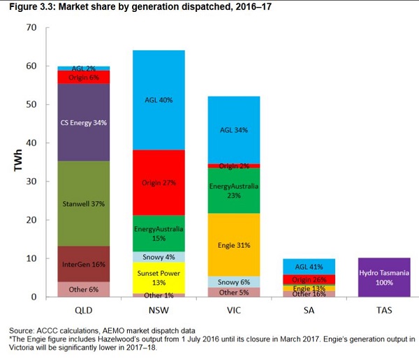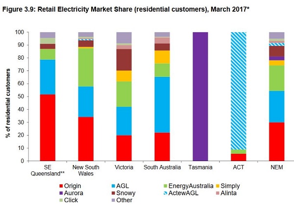 The ACCC in its interim report on the Electricity supply & prices inquiry has this table of retail market share: