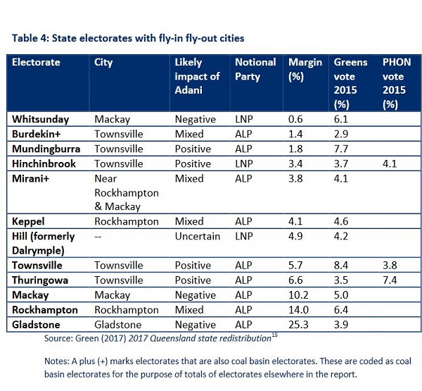 Independent MP Rob Pyne[15] said politicians were protecting their jobs first – they seek re-election. The incumbent government wants re-election. Policy reflects that the pro-Carmichael coal belt (Gladstone – Townsville) is critical to re-election. Labor MP Craig Crawford[16] said little to suggest another rationale but was coy about his own re-election as motive. He was personally against Adani, but had to toe the party line.