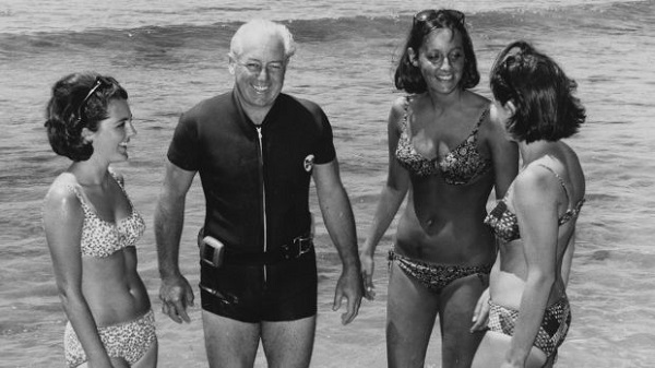 PPS: who was that old guy in the photo, with the suntanned and semi-clad ladies at the beach?? Was the pic taken at Waikiki??? And why did he have a great big zip down the front of his bathing costume?? And what were they all grinning about? A disconcerted nation awaits the answers….