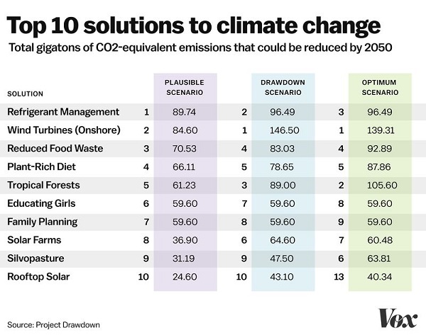 Back in June John D sent me the link to the Vox article A new book ranks the top 100 solutions to climate change. The results are surprising with an exhortation Definitely a must read for anyone interested in doing something about climate change. Late, but here it is. Hawken says that if we carry on as we are in a realistically vigorous manner, we will fail. We can succeed, he says, if we adopt and optimise all the solutions available to us, with technology that already exists.