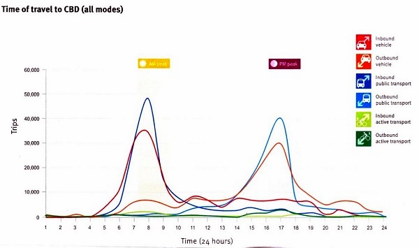 I’ve inserted John’s graph in the post based on Brisbane traffic to the CBD but similar patterns would apply to other large cities:
