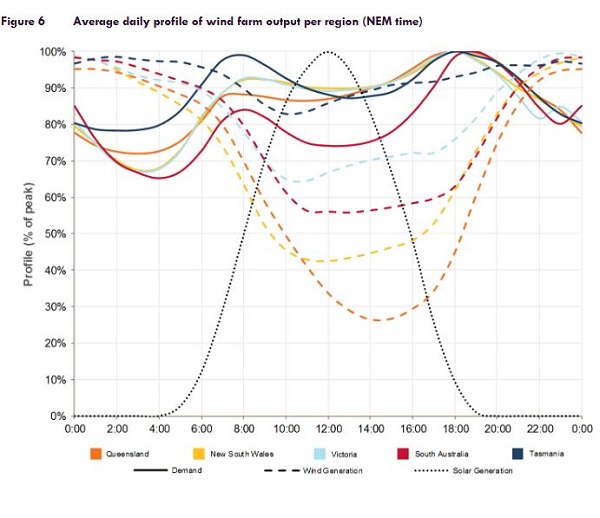 They show an interesting pattern of how the wind blows over 24 hours in the various NEM states, with an overall profile of solar: