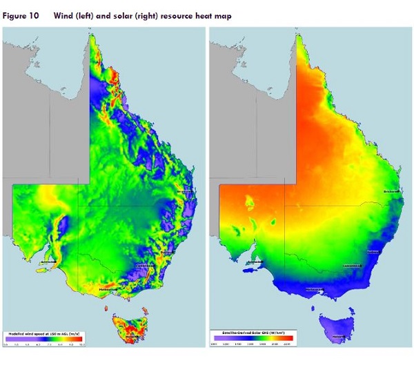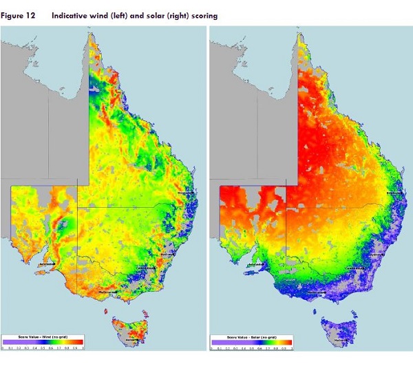 In plotting renewable energy zones they looked at where the wind and solar resources are: