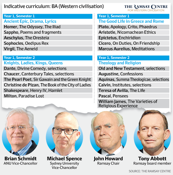 When Nobel laureate ANU VC Professor Brian Schmidt queried this with Ramsay Foundation chair, one former PM John Howard, he was told he would have to “suck it up”. The course looked innocent enough: