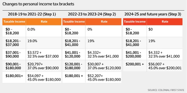 Stage three begins on July 1, 2024. It will abolish the 37 per cent bracket and apply 32.5 per cent to all earnings between $41,000 and $200,000, covering 94 per cent of workers.