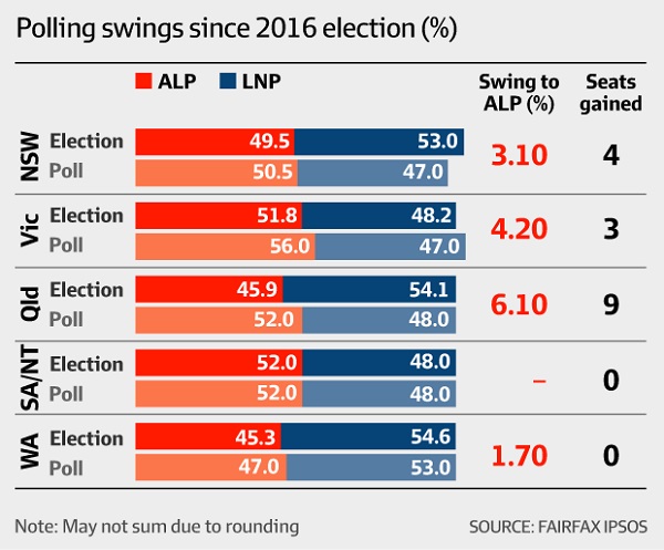 Meanwhile Kevin Bonham asks whether seat polling is utterly useless. Pretty much, it seems. He says don’t ignore them completely, but I have ignored them ever since they predicted Kevin Rudd to lose his seat by 10 points in 2013.