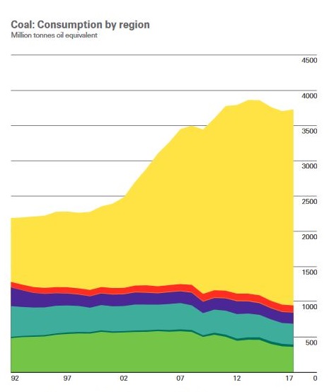 In his comment of September 10, 2018 at 1:40 pm Geoff Miell links to the BP Statistical Review of World Energy – 67th Edition, published 13 June 2018 which is a snap-shot of the calendar year 2017, and comparison with previous years. Here are some graphs.