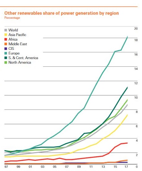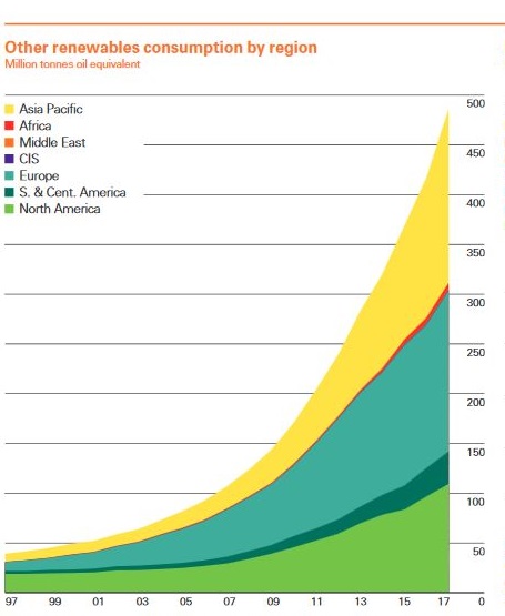 Here we have the progress by region of ‘other’ (meaning other than hydro) renewable energy consumption:
