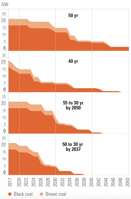 It looks at scenarios where the life of existing coal plants may be shortened, from 50 years to 40, or even 30. They come up with these scenarios: