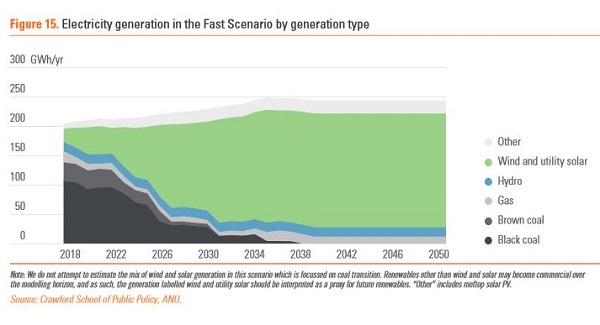 The Australian report looks at what might happen based on economics, without a specific emissions trading policy or other similar climate-specific policies.