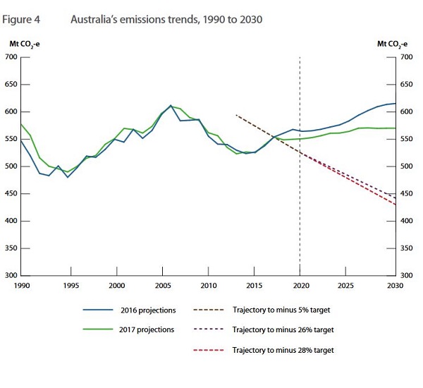 I searched and found Australia’s emissions trends, 1990 to 2030. Here are a few choice graphs. First, the actual emissions projections: