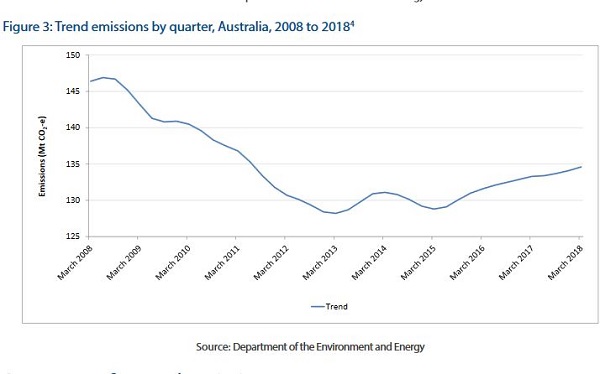 The first graph was the one and only shown in the media release. To get the full report you have to scroll down the Further Information and click on Progress of the National Greenhouse Gas Inventory which gives links to all reports, including the Quarterly Update of Australia’s National Greenhouse Gas Inventory: March 2018