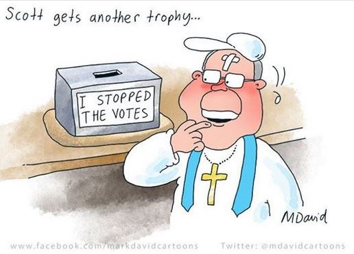 Cartoonist Mark David shows how Scott Morrison applied his proven skills in the Wentworth by-election: