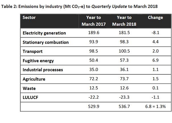 I posted in some detail last month on the National Greenhouse Gas Inventory for March 2018, but did not then have this neat table available: