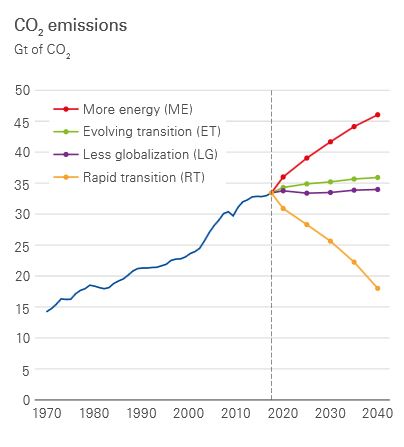 The problem with ET is that it would see CO2 emissions rise by 7 per cent, so a Rapid transition (RT) scenario has been formulated which see carbon emissions fall by 45 per cent by 2040: