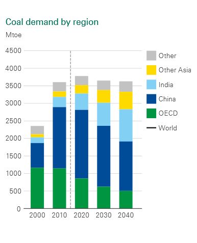 The headline is that oil giant BP sees global demand for coal continuing for decades in the face of dynamic growth of renewable energy.