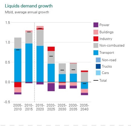However, they see oil demand as essentially flat from 2020, but not declining thereafter, with the growth then coming from NGLs (natural gas liquids) and ‘other’ including biofuels.
