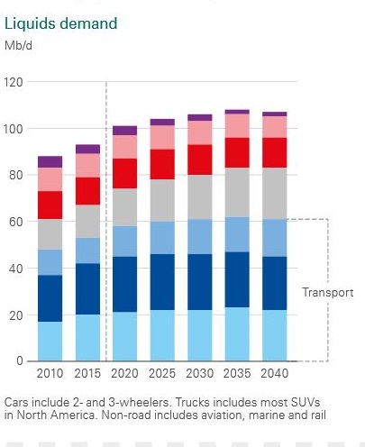 Peak ‘liquid fuel’ they see arriving in 2035. They see strong demand in motorised transport, electric cars notwithstanding until about 2035.