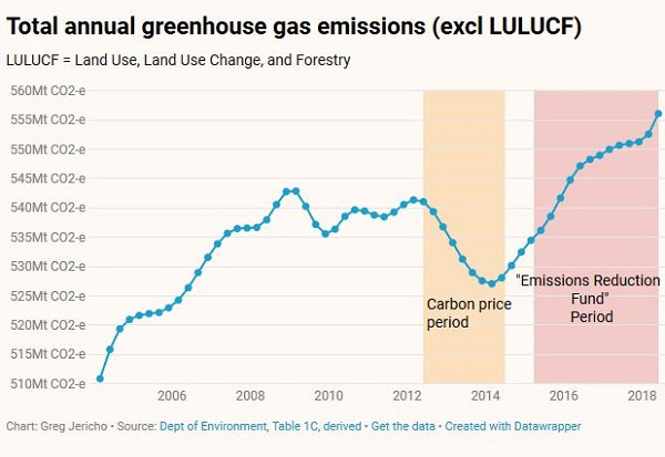 I think it’s worse than that, but lets start with a few inconvenient graphs from Jacob Greber’s The government thinks we’re idiots and is not serious about reducing emissions: