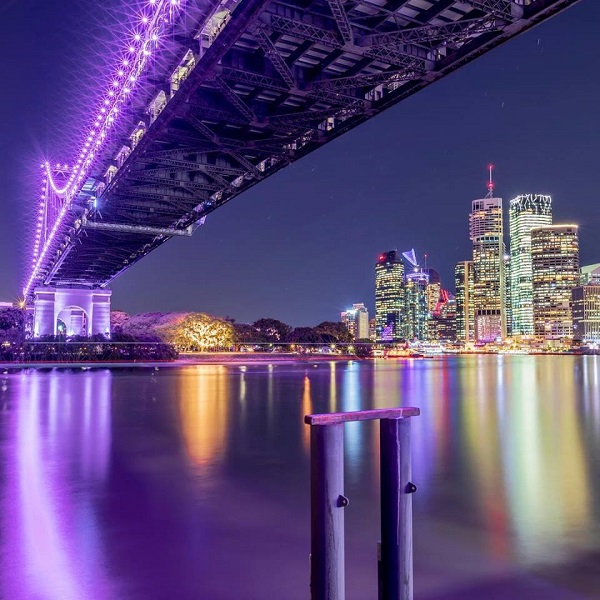 Here’s a lovely shot of how the Story Bridge in Brisbane was coloured purple: