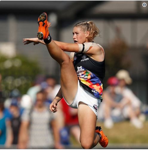 She plays for Carlton, who got done over by the Crows by 45 points in front of over 53,000 people.