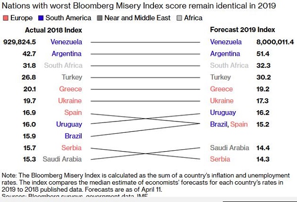 For misery, the standout is Venezuela, where inflation last year reached 8 million per cent: