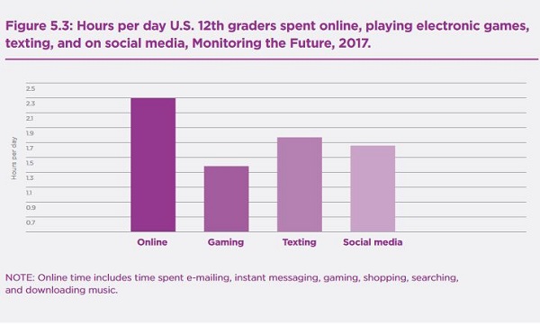 This article gives a quick summary of the chapter in the World Happiness Report devoted to the impact of screen time on American youth from about 2011. If you look at screen time for Year 12 students, you get about 7 hours per day, not including television: