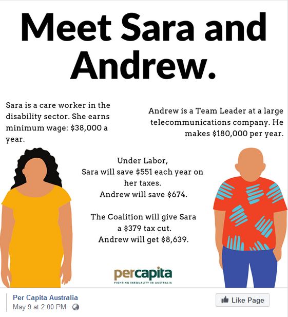 The message should have been, 10 million lower paid Australians will get better tax relief out of Labor. Even then we have more words than can be taken in by a three-second exposure, and what images would you use?
