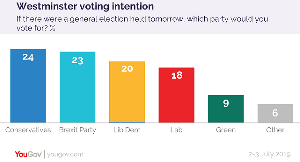However, this most recent poll could be the first sign of a recovery for the Conservatives. They are now on their highest share of the vote since before the European Parliament election, possibly due to their pending transition to a new leader.