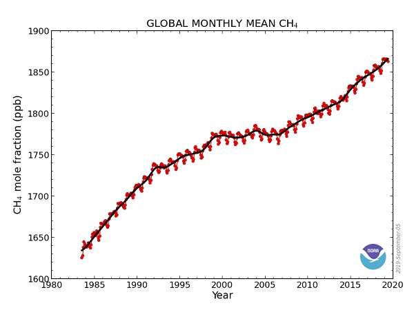 Nisbet et al. identify the increased rate of rise in those four years, and consider the implication for the Paris climate agreement. The stated goal is to keep global temperature rise “well below 2°C.” So far, all our plans, our computer models, our strategies that have a decent chance of accomplishing that goal have relied on no increase in CH4, some even rely on decreasing CH4 in the air. The fact that it’s going the wrong way, at increasing speed, is a genuine threat to our chances of success. (Emphasis added)