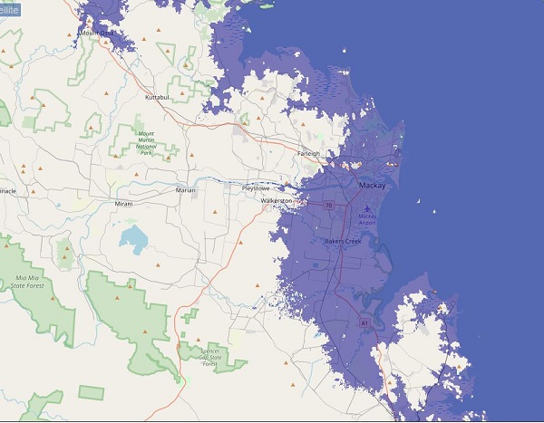 To concentrate Jumpy’s mind I’ve had a look at how that plays out in Mackay, according to Firetree flood maps: