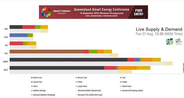 Queensland has been almost all the time a net exporter of energy, and much of the new network solar now comes from there. This day in August has been fairly typical of what happens (from the NEMWatch site):