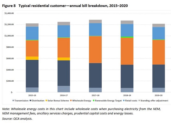 Here is the graph of power bills from the Qld Competition Authority’s 2019-20 Regulated electricity prices for regional Queensland: