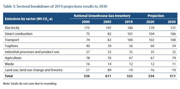 This article in RenewEconomy shows a table projecting emissions from 2019 to 2030: