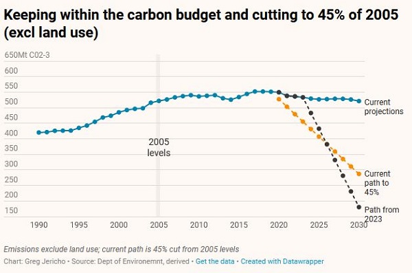 Greg Jericho says he loves the sunburnt country but If you love Australia, climate change should scare the hell out of you. Moreover, Scott Morrison’s stance on climate change makes it harder for future governments to undo his damage. This is the shape of the task that would face an Albanese government to repair the damage of the Morrison policies, given that, according to the science, you can’t just ignore all the emissions that should not have been released during the Morrison delinquency: