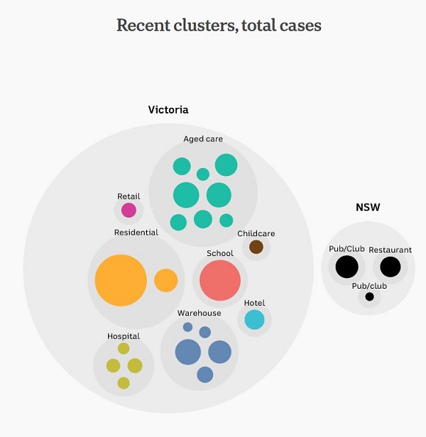 This image, from the ABC COVID monitoring site, contrasts the difference between NSW and Victoria:
