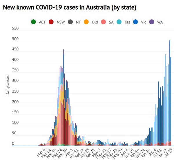 A friend of mine had this relevant comment: “At 484 cases yesterday in Victoria, I suspect that workforce casualisation’s fatal flaw has been revealed.