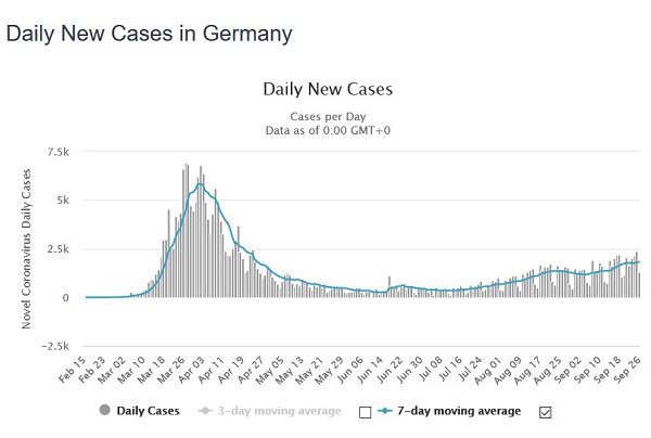 Health decisions will never be made entirely on rational grounds. If they were we should consider emulating China, which has been hugely successful in extinguishing outbreaks and keeping infections low. Europe in general is entering a new crisis period, especially in places like France and the UK, where the new case loads are 4,630 and 2089 per day respectively in our terms, and climbing fast.