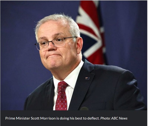 That photo heads up Michael Pascoe’s excellent piece Hypocrisy and smokescreens cloud the ‘Canberra Bubble’ drawing on, inter alia, Samantha Maiden’s excellent work on the issue at news.com.au and on Twitter, highlighting the hypocrisy around the issue, the inadequacy of Porter’s response, and assuring Morrison that he has not in fact dealt with the issue.
