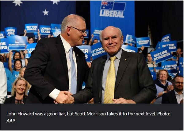 That article is quite broad about the Coalition. Dennis Atkins brings us back to Morrison’s special ability in a perceptive article – All politicians lie, but Scott Morrison’s untruths transcend the usual.
