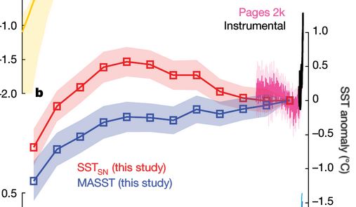 Research done by Samantha Bova et al Seasonal origin of the thermal maxima at the Holocene and the last interglacial gives quite a different picture, one of steady warming. This has important implications for where we are at with global warming.