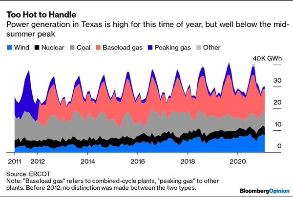 a piece in Bloomberg warned against pointing “too many fingers at Texas wind turbines, because they’re not the main reason broad swaths of the state have been plunged into darkness”.