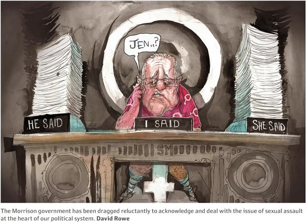 - On Thursday, Scott Morrison rejected calls for an independent inquiry into the allegation — such as the one ordered by High Court chief justice Susan Kiefel into allegations of sexual harassment by former judge Dyson Heydon — saying “that would say that our rule of law and our police are not competent to deal with these issues”.