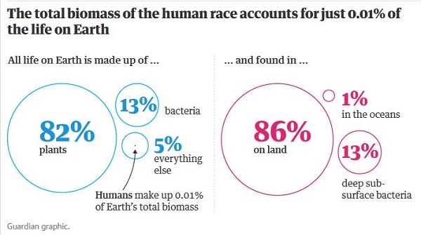 Economics’ failure over destruction of nature presents ‘extreme risks’Humans just 0.01% of all life but have destroyed 83% of wild mammals – study
