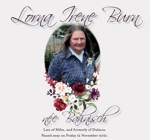 Sadly, November saw the death of my younger sister Lorna, who passed away after a short illness just a few days after a significant birthday. For those who knew and loved her she was a very authentic person, or as my brother said in the orbituary, true blue! This photo highlighted by Keatings Funerals in Chinchilla is from her later years: